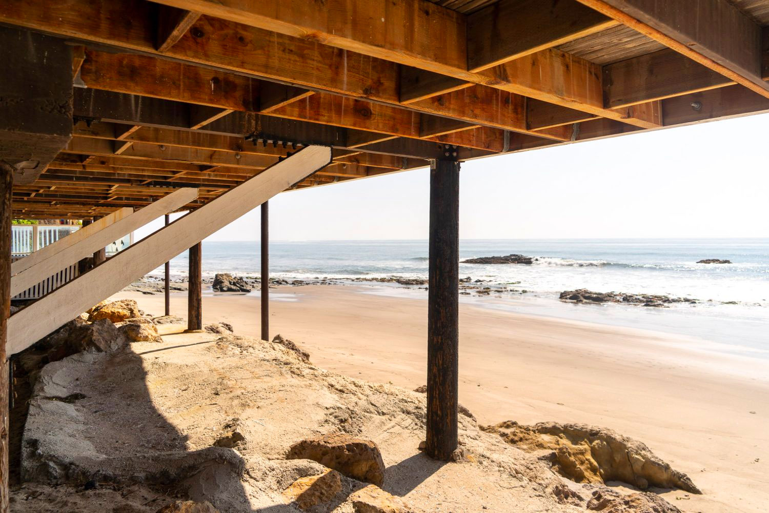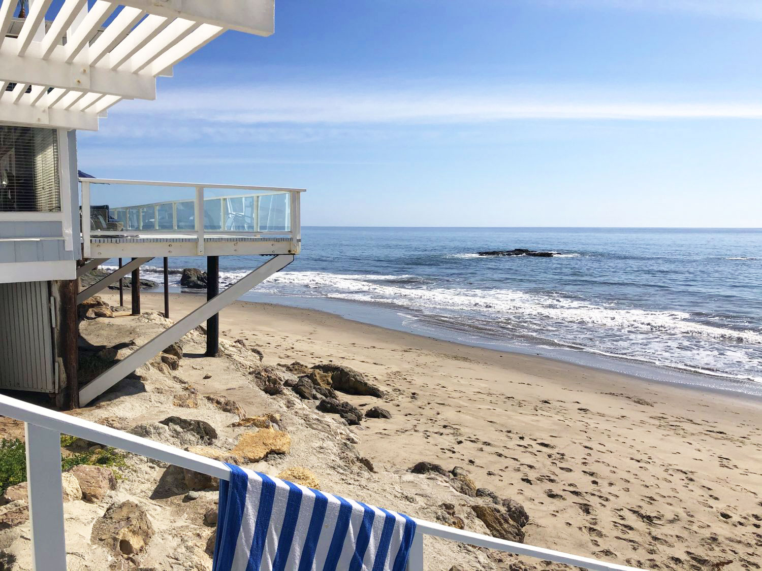 This charming beach front property features an outdoor fire pit, sundeck, surfboards and upfront views of the ocean. The open living room cascades into a comfortable outdoor lounge deck, supplying ample natural light. Enjoy the stunning sunset views at this ideal Malibu location. Available for filming, photography / photoshoots, commercials, high-end production.